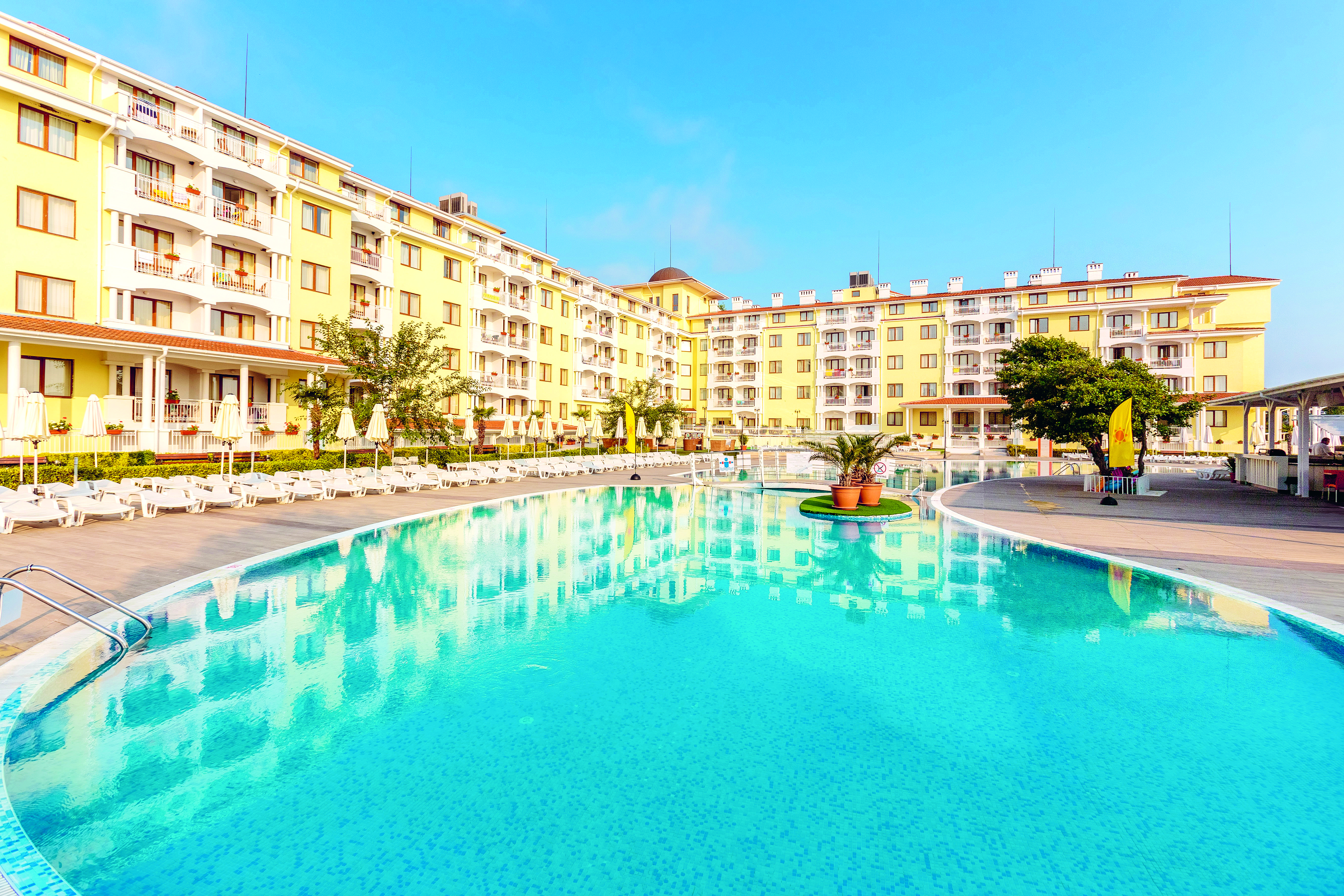 The pool is the place to be here. Along with the main one, there’s a smaller swimming spot for children, and one for toddlers, too. Dining is covered by the buffet restaurant. And there’s stuff like table tennis, volleyball and water polo on the activities line-up.