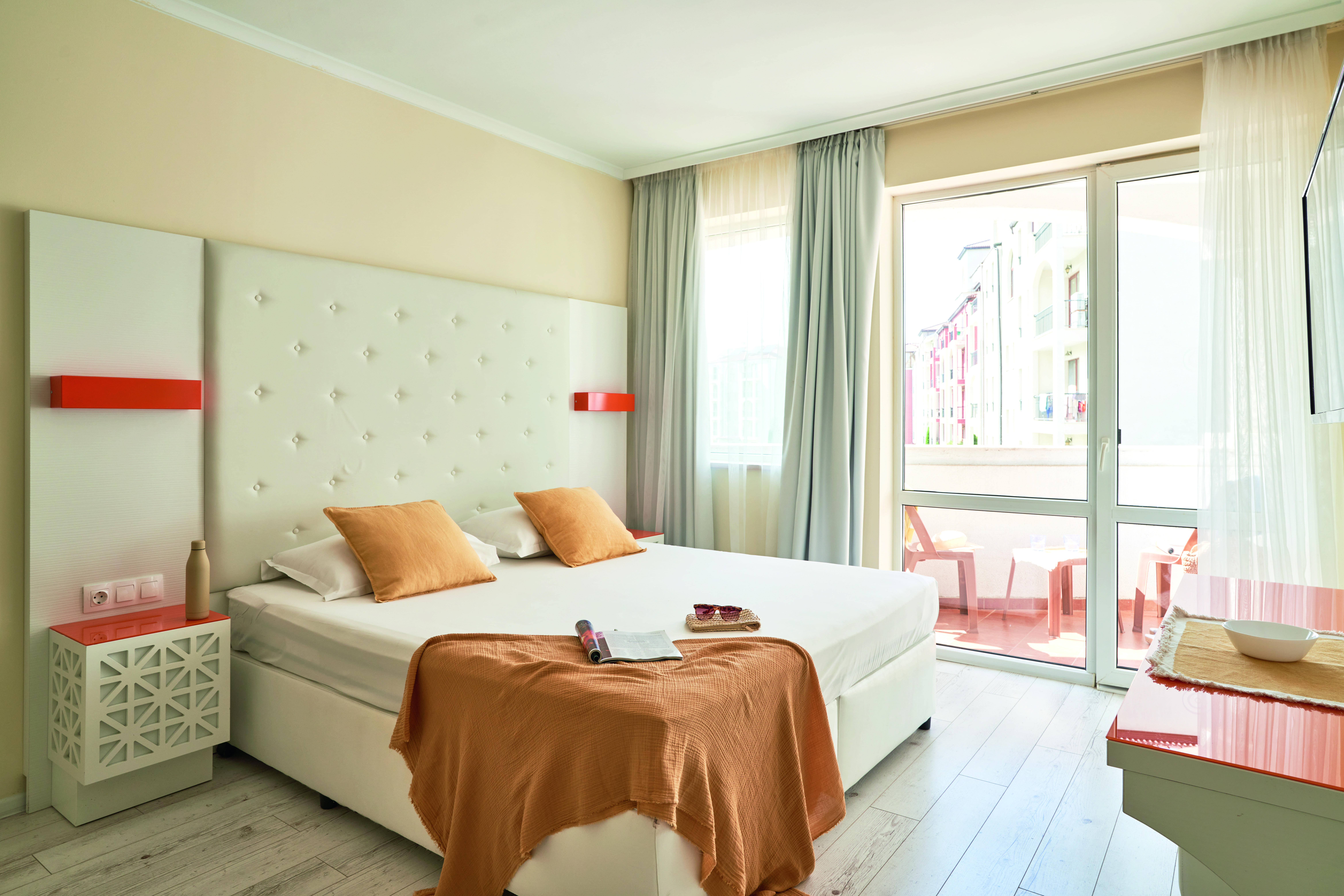 Double rooms and 1 bedroom family rooms at TUI SUNEO Serenity Bay include cable TV, air-conditioning, a mini-fridge, safety deposit box and a balcony.
