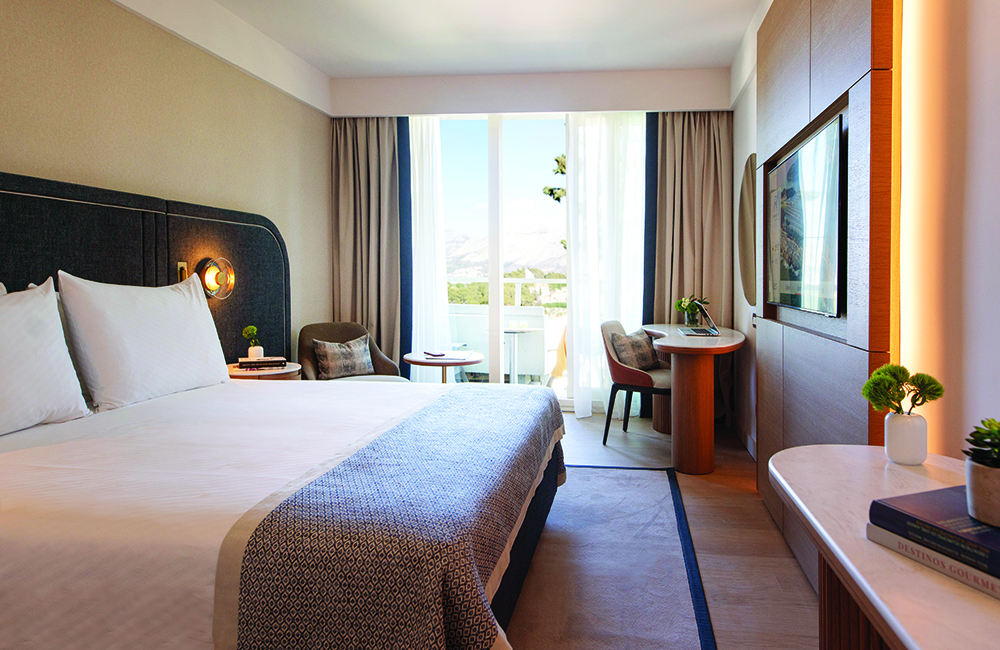 Adults can head to the impressive spa with heated indoor pool, Jacuzzi and indulgent treatments, or spend long, lazy afternoons by the rooftop pool soaking up the rays and the wonderful views while the kids splash around. Thanks to the hotel’s unrivalled waterfront position, guests have direct access to not one but two beaches, and a sunbathing platform just steps from the Adriatic. Prefer to explore? The must-see medieval city of Dubrovnik – with its charming cobbled streets, portside cafés and heritage buildings – is just a 30-minute drive or an easy boat ride away.