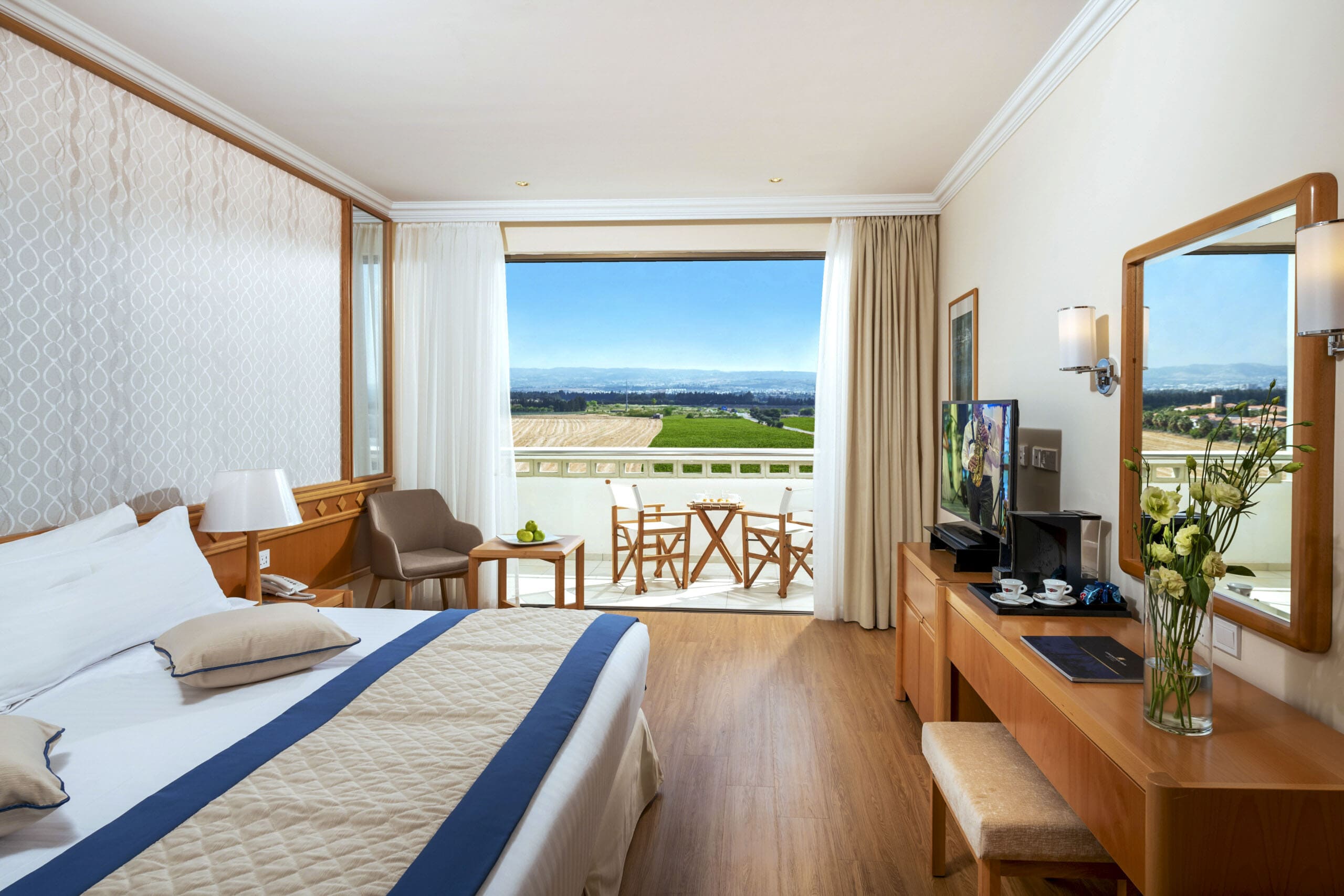 The only thing that separates this supersized hotel from the sea is a beach, where you’ll find loungers and waiter service. A 30-minute walk – 5 by bus – takes you to Paphos harbour. Plus, if you're looking for a golf holiday, this hotel's a great pick.