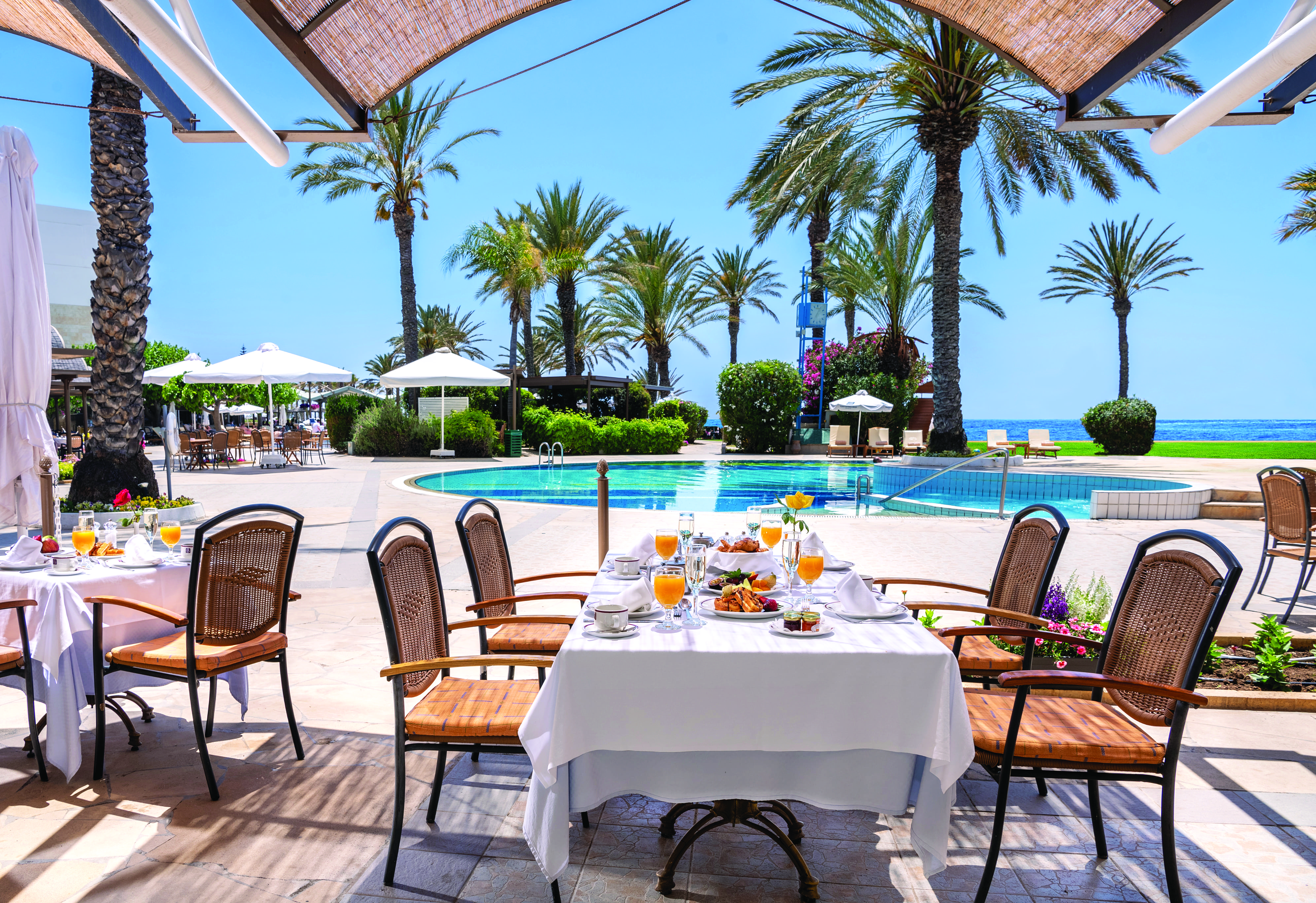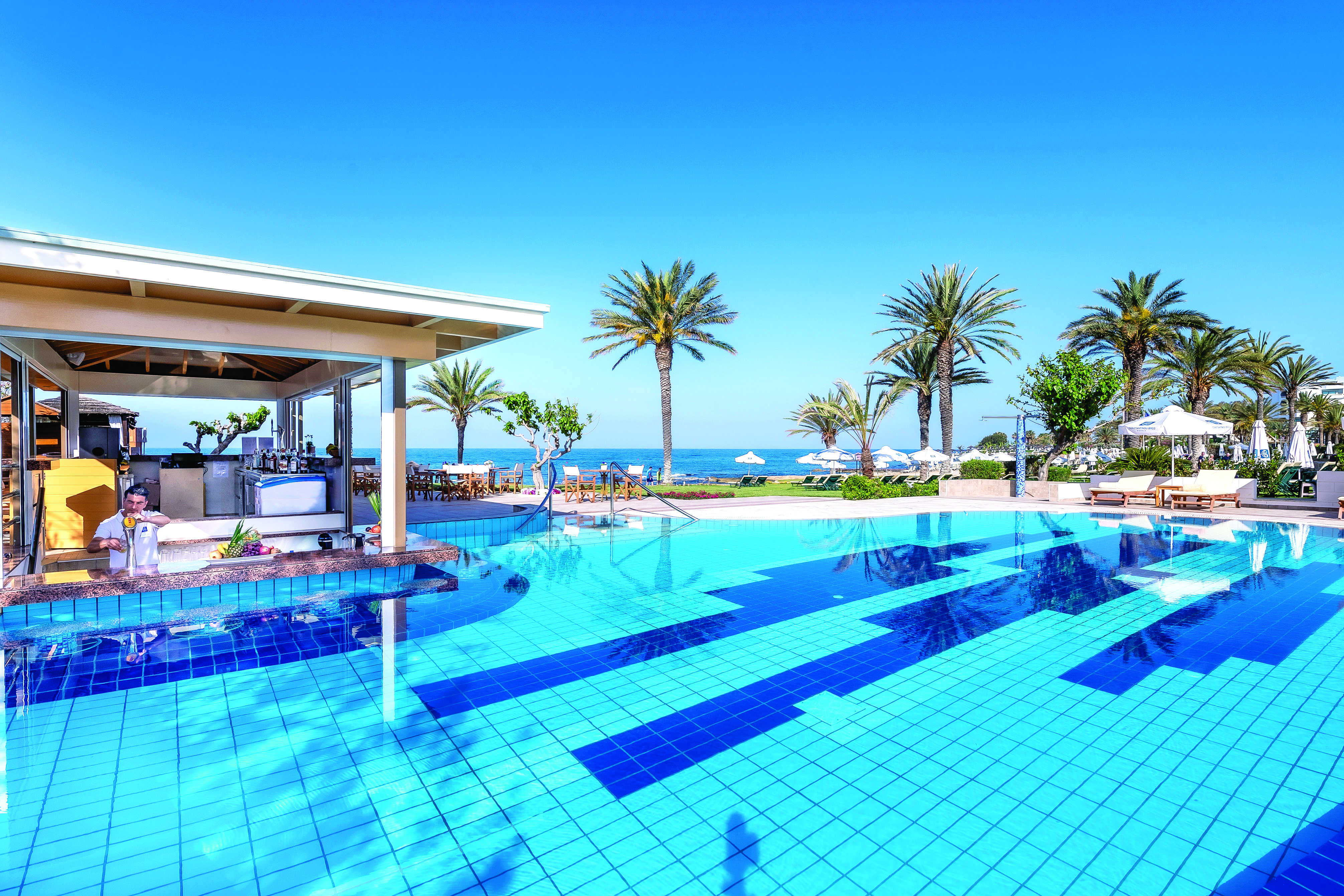 There are six restaurants and they all face out to sea. The main buffet offers breakfast and dinner, often with themed cuisine. A pick ’n’ mix of à la cartes includes Cypriot and Italian numbers. There’s a weekly Cypriot or Greek night by the pool or in the gardens. Traditional dishes are accompanied by music, singing and dancing in the summer.