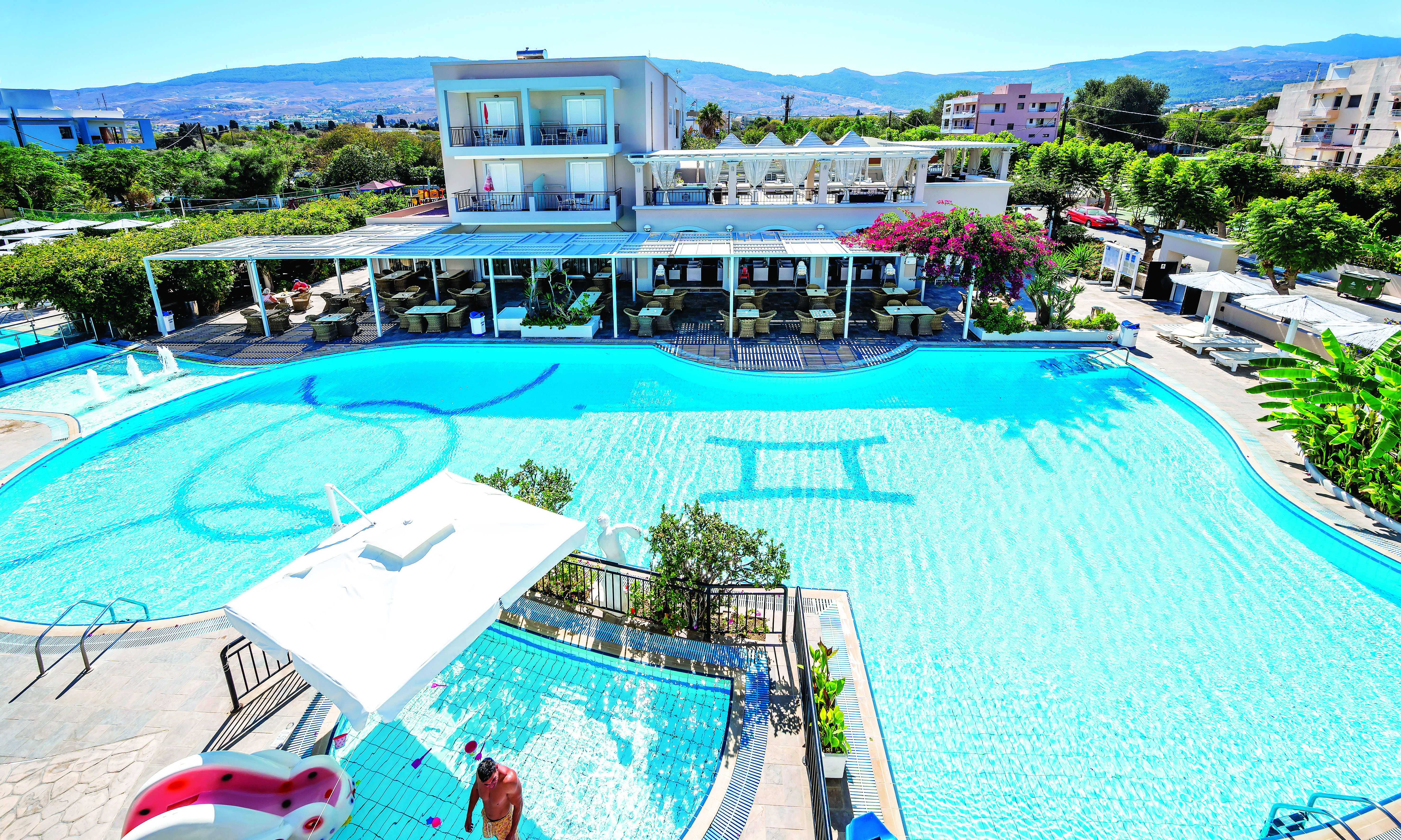 Near the centre of Kos Town, only 15 minutes’ walk from the harbour, this hotel has loads of family friendly facilities.
