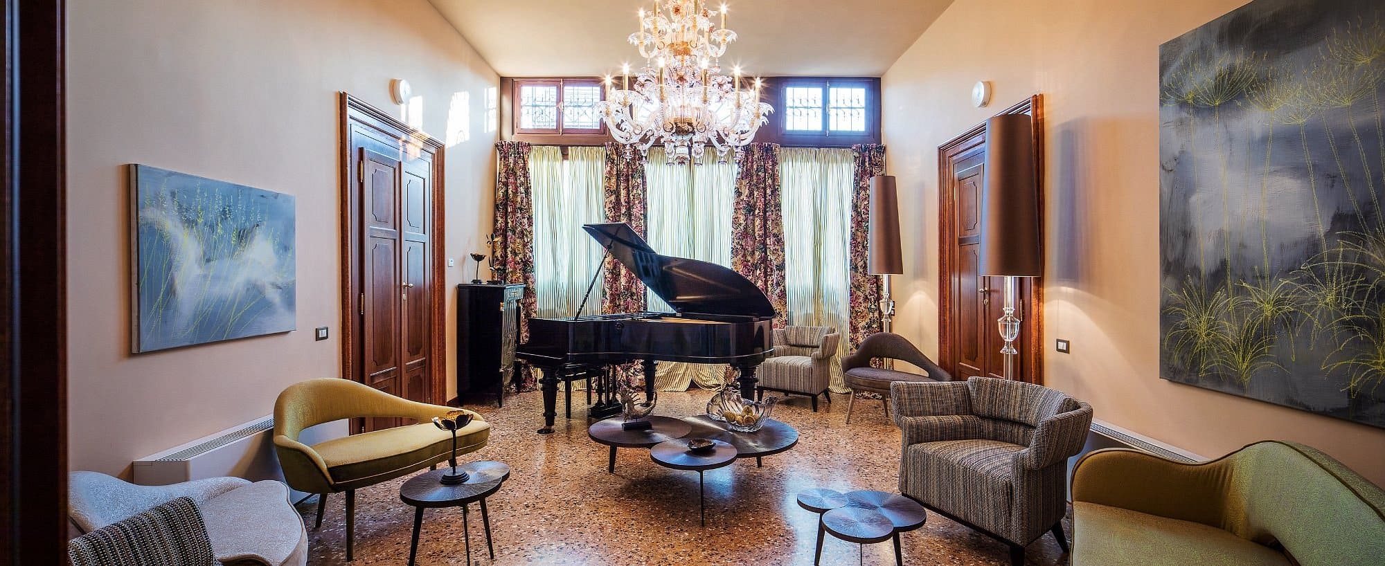 The hotel offers a refined and relaxing setting to enjoy food and drink throughout the day. Mornings begin with a delicious breakfast, which can be savoured in the garden or in the elegant drawing room. After a day exploring Venice, guests can unwind back at the hotel with a drink at the bar or spend time in the inviting music room. Whether starting the day or winding down in the evening, the atmosphere is designed to provide a calm and enjoyable experience centred around good food, drinks, and comfort.