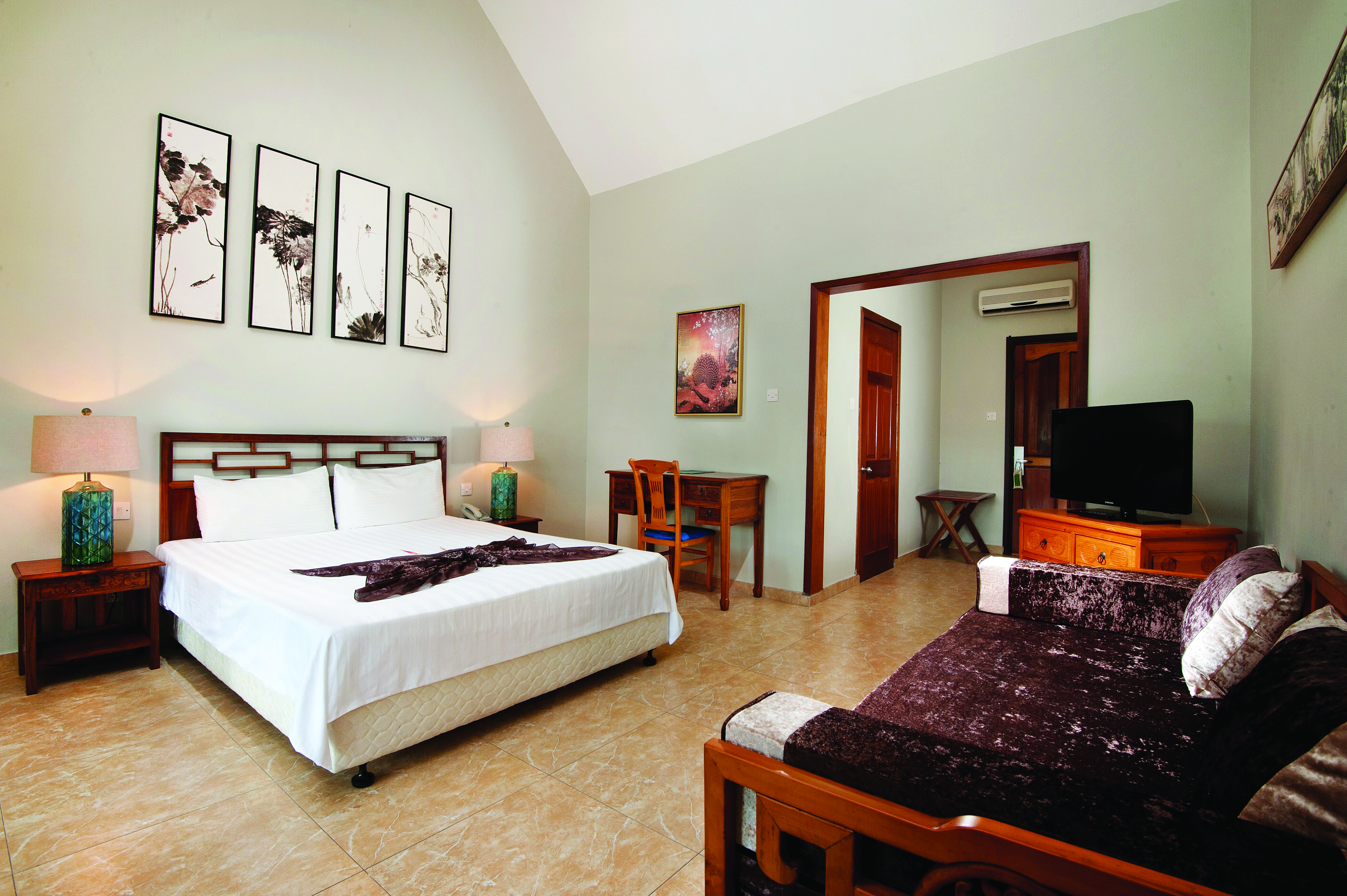 Location-wise, you’re right in the heart of the sun-drenched village of Trou aux Biches. As well as quaint shops to explore, you’ve got a sandy beach to flake out on, which is backed by coconut-filled palms.