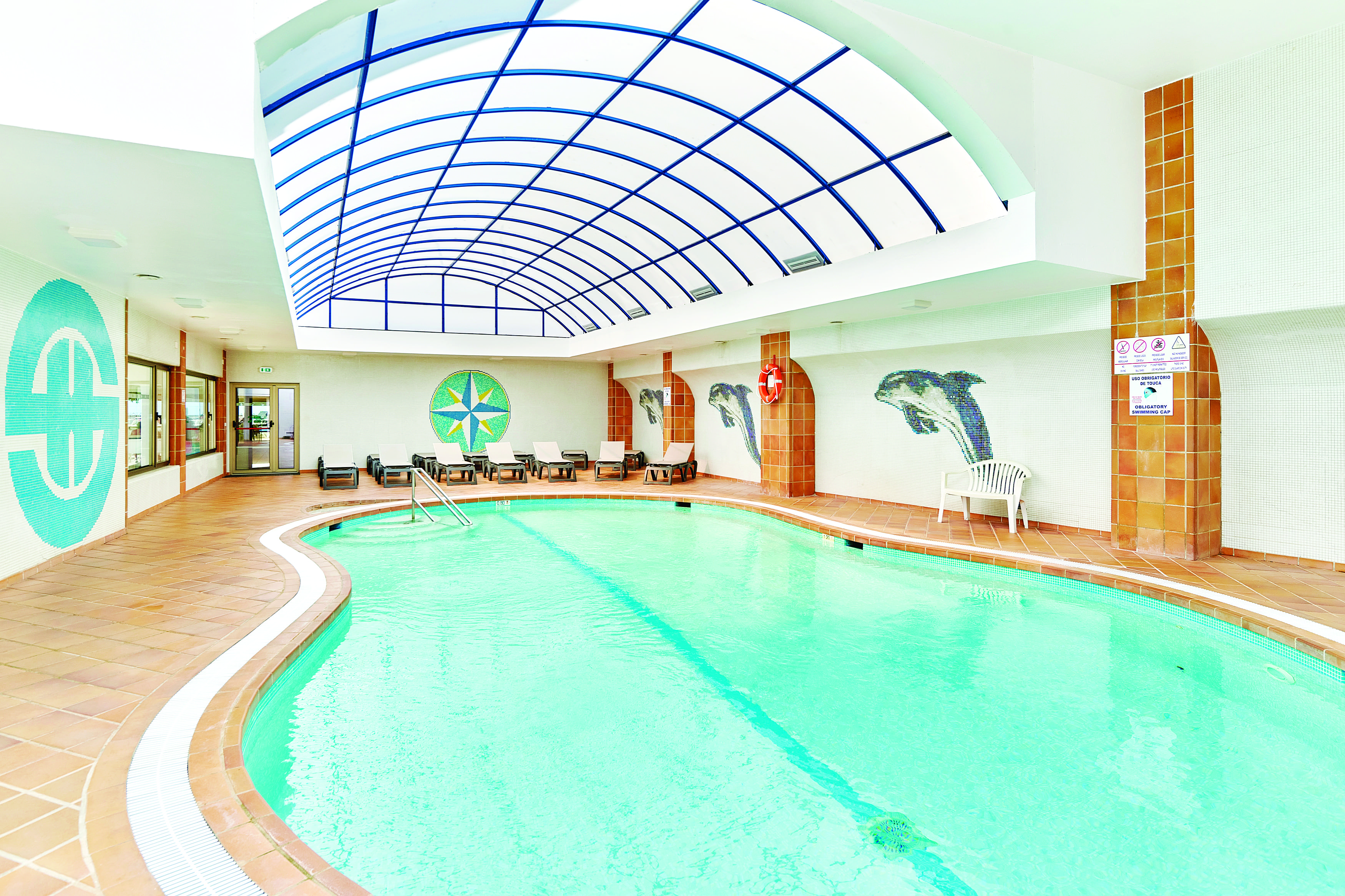 The pool area is the heart of the complex. A big swimming pool is bordered by well-tended lawns, with a snack bar and a children’s pool on hand. Head inside, and you’ll find a restaurant, a health club, and a games room with snooker tables and a minigolf course.