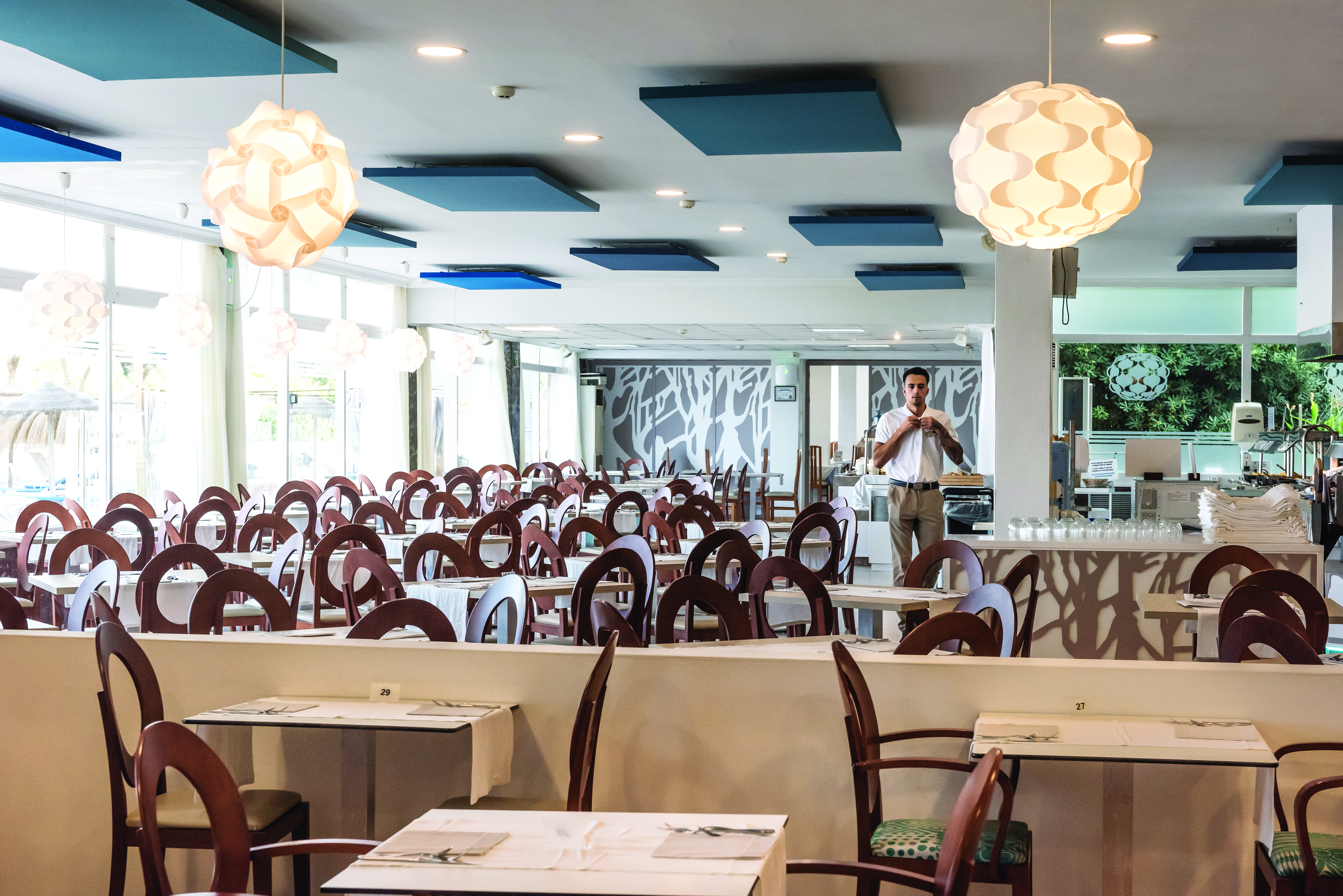 Here you get a lagoon-style pool with a children’s section. There’s also a second pool for toddlers. Alongside these are two good-sized terraces for sunbathing, with bar service at both. For food, the buffet restaurant serves up local and international food, along with healthy dishes. And the Restaurant Baulina serves lunch on the terrace. For relaxing, there are two bars and three lounges.