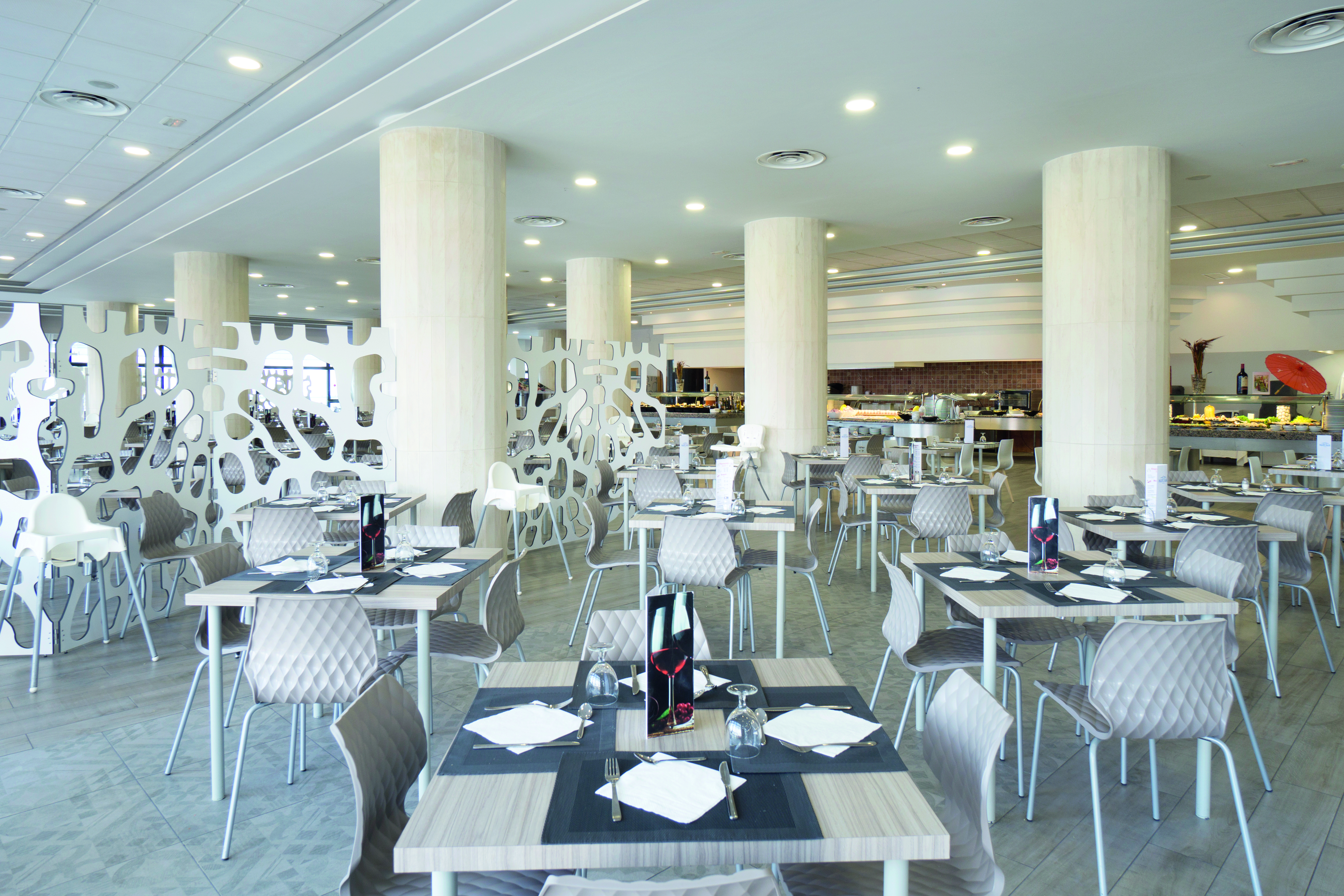 You can pick from a buffet spread of fruit and pastries. Evening meals are kept varied, with different meat, fish and pasta dishes every night. If you're booked on AI Gold you can also dine in La Farfalla, a modern Italian place that has top-notch sea views. Or, take a seat in the Be Blue Restaurant where fusion cuisine is served with cocktails on the terrace.