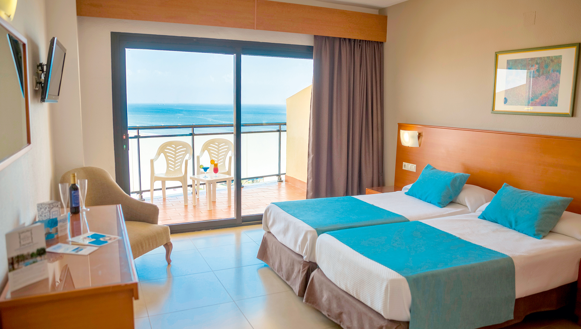Rooms here come with a TV, mini-fridge, hairdryer, a balcony or terrace and a safe*. There’s air-con between 15th June and 15th September, too. If you choose a superior room, you'll have partial sea views, plus water and wine on arrival.