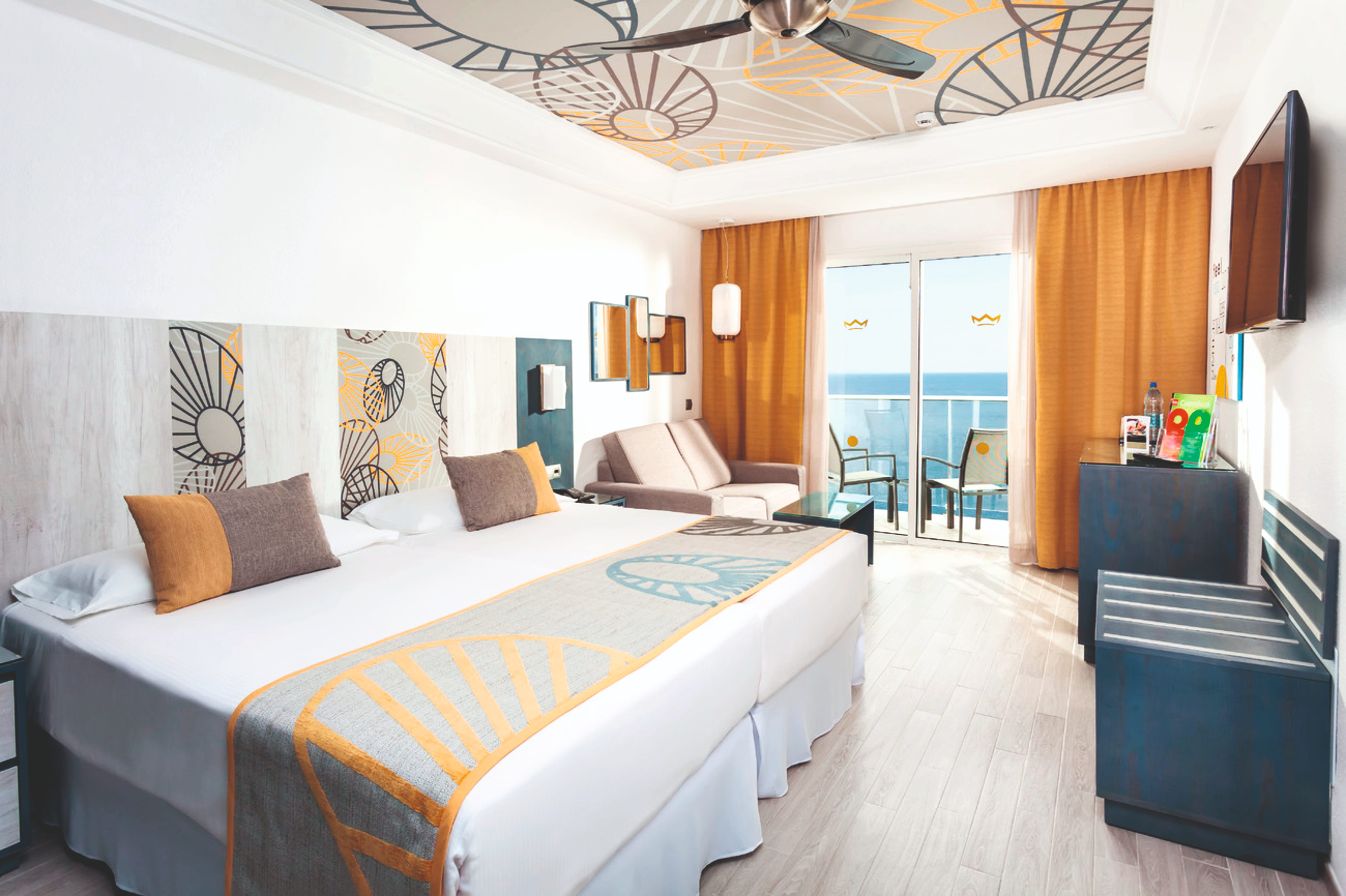 There's single and twin rooms here, and they all have a balcony and a sea view. And junior suites come with a lounge area for a bit of extra space. All rooms come with free Wi-Fi, a balcony, air-conditioning, satellite TV, safe and a mini-fridge.