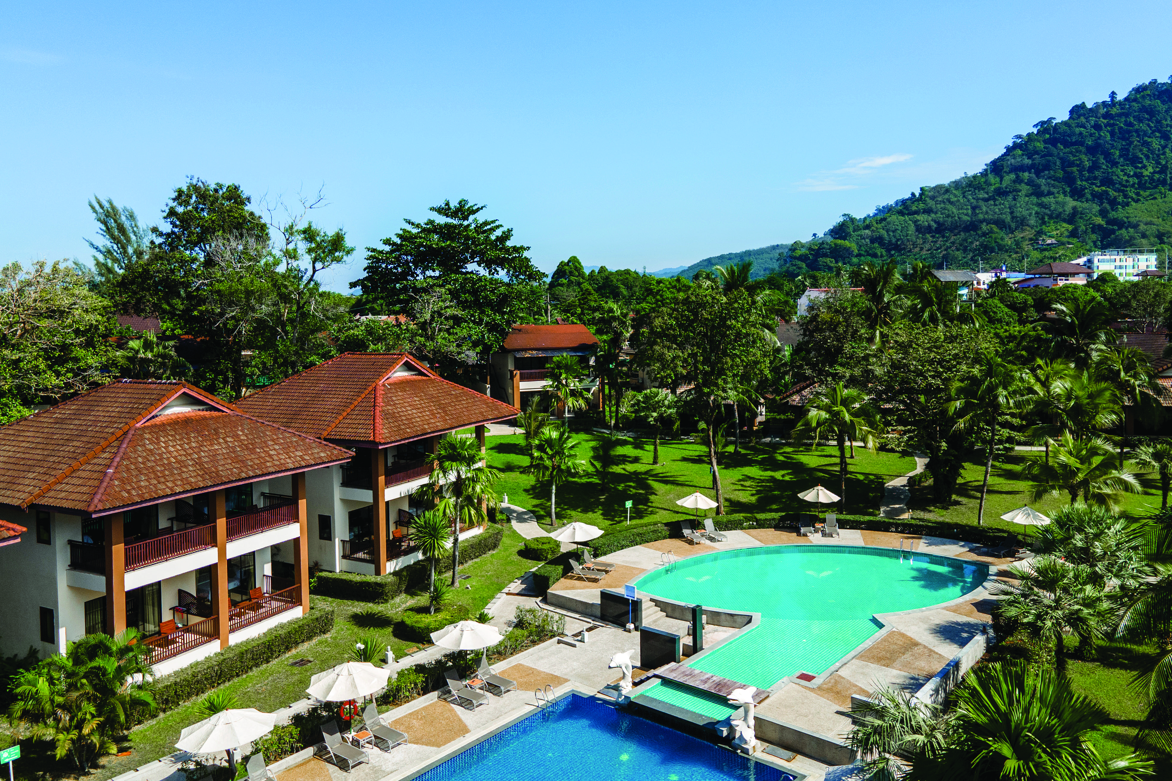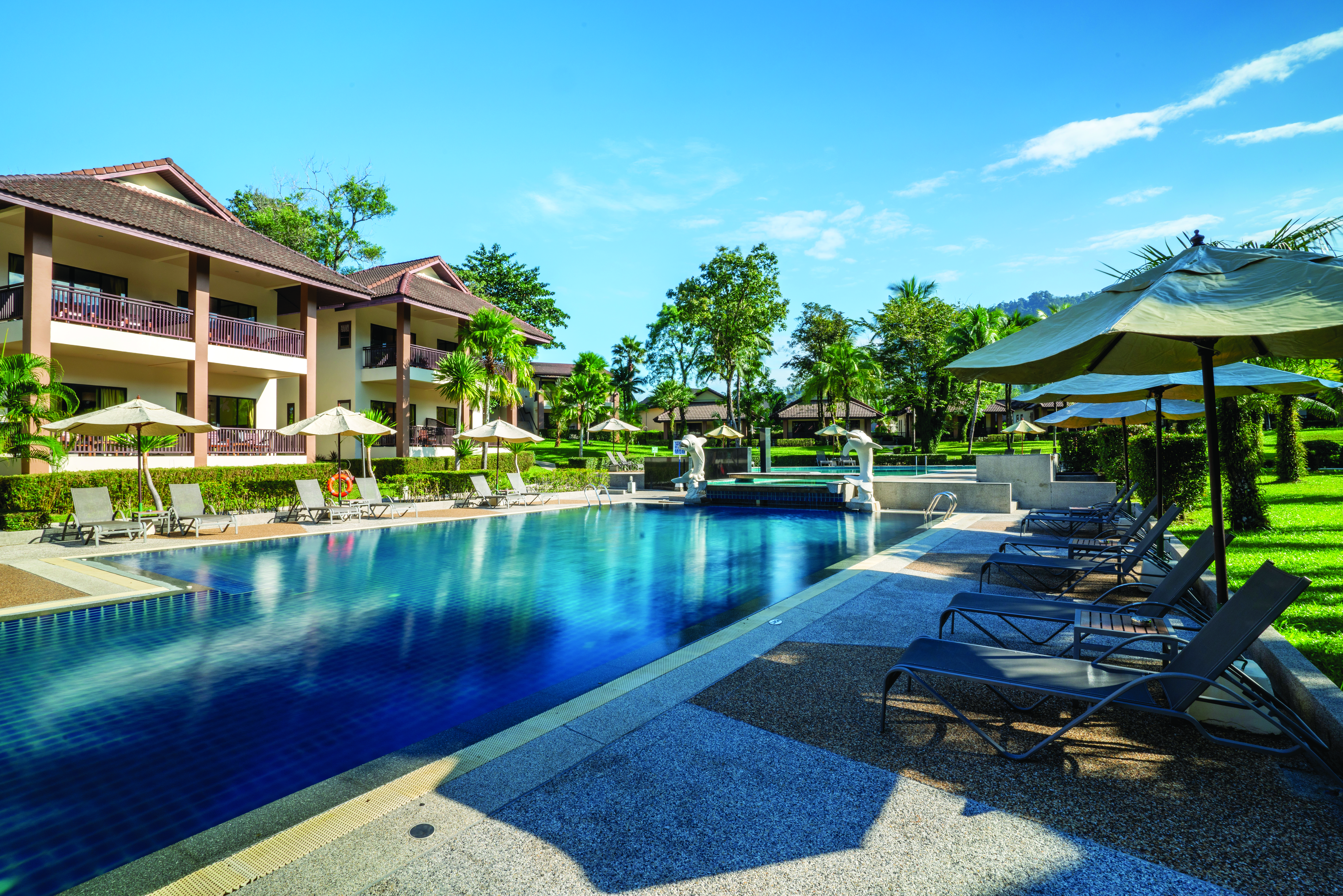 This quiet hotel is just a five-minute stroll from the most popular beach in Khao Lak. So, you can shimmy down there to sink your toes into biscuit-coloured sand or go for dips in the Andaman Sea whenever you like. Back at base, a pair of sunlounger-lined outdoor pools are sheltered by tropical greenery – you’ll see pretty palms and leafy shrubs from your bed if you book a room with a balcony, too.