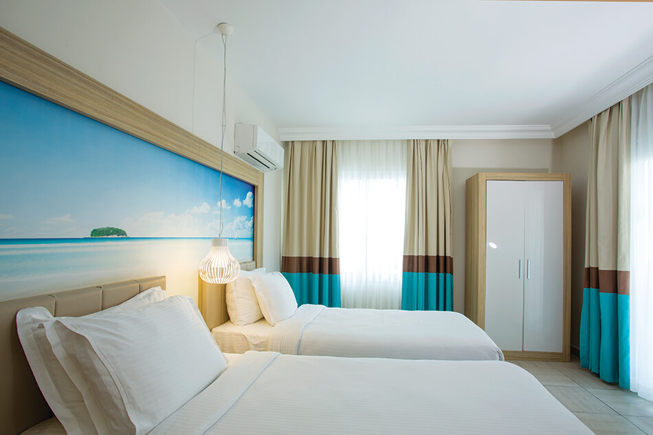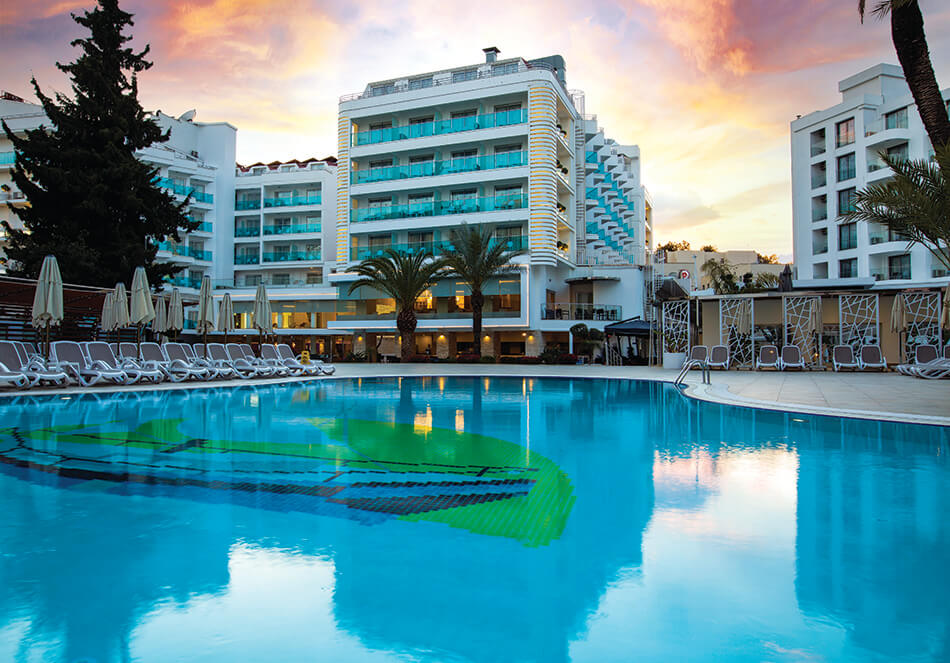 The Blue Bay Platinum is set in the centre of Marmaris, with shops and bars on the doorstep. The harbour and old town are a few minutes’ drive away, and you’ve got a private section of next-door Marmaris Beach.