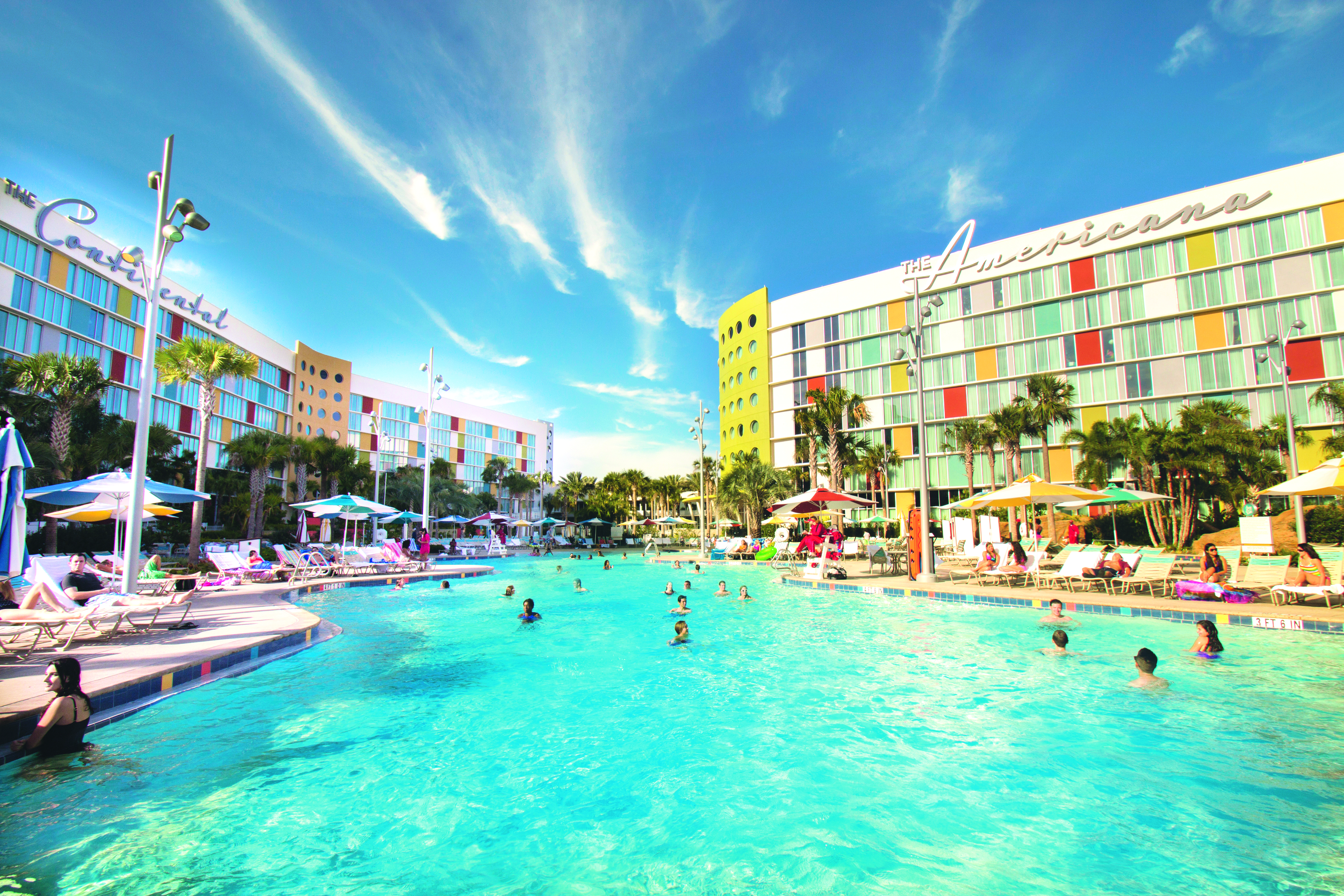 A trio of theme parks are right on your doorstep when you stay at the retro-themed Universal’s Cabana Bay Beach Resort.